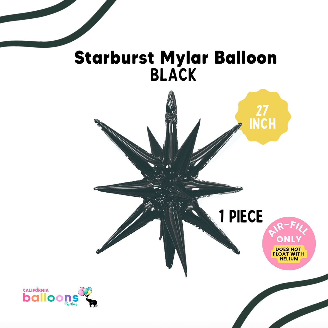 27" Starburst Exploding Star Mylar Balloon - BLACK (AIR-FILL ONLY)